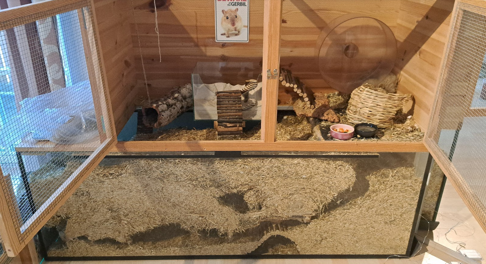 Rennmäuse sind begeisterte Nager, darum muss darauf geachtet werden, dass das Gehege nage- und ausbruchssicher ist. Mehr Informationen zum Gehege und Gehegebilder findet ihr hier: Gehege und Einrichtung