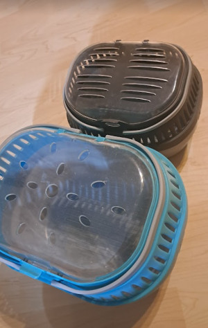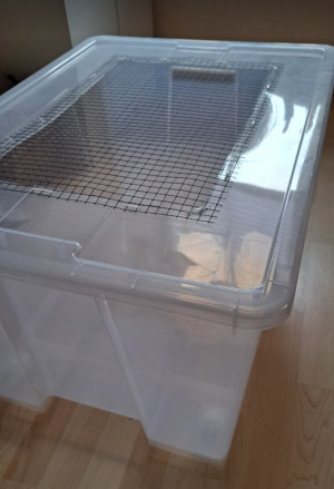Als Notfallkäfig eignet sich eine große Sammlabox gut, von der ein Teil des Deckels durch Gitter ersetzt wird. Die Sammlabox eignet sich auch gut als neutraler Raum, auf dem die Mäuse bei einer Vergesellschaftung nach der Zeit am Trenngitter zusammengesetzt werden.