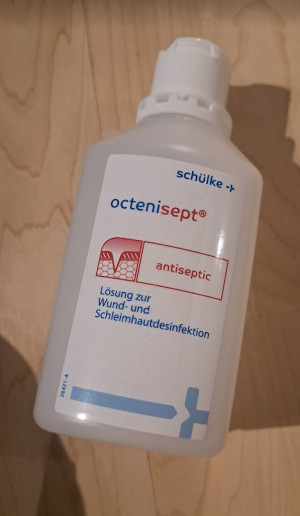 Desinfektionsmittel ist wichtig, um Bisswunden oder andere Verletzungen bei den Mäusen desinfizieren zu können. Octenisept oder andere Wunddesinfektionsmittel eignen sich dafür gut. Geeignetes Desinfektionsmittel gibt es z.B. in der Apotheke, im Drogeriemarkt oder beim Tierarzt.