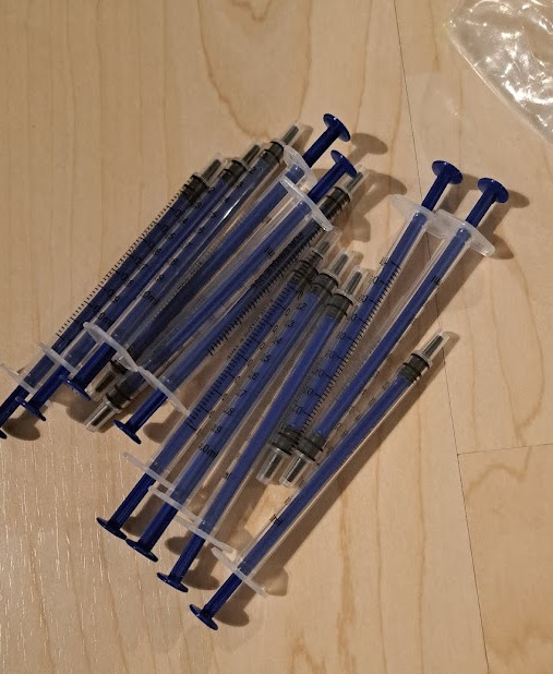 Um Medikamente richtig dosiert verabreichen zu können sind Spritzen hilfreich. Diese bekommt man beim Tierarzt, allerdings wird beim Tierarzt meistens nur eine Spritze pro Medikament mitgegeben. Mehrere Spritzen können entweder online bestellt oder in der Apotheke gekauft werden. Am besten eignen sich 0,1ml Spritzen.