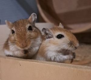 | Rennmäuse werden nur zu zweit oder einzeln zur Vergesellschaftung abgegeben | Rennmäuse werden auch zu dritt oder in größeren Gruppen abgegeben |